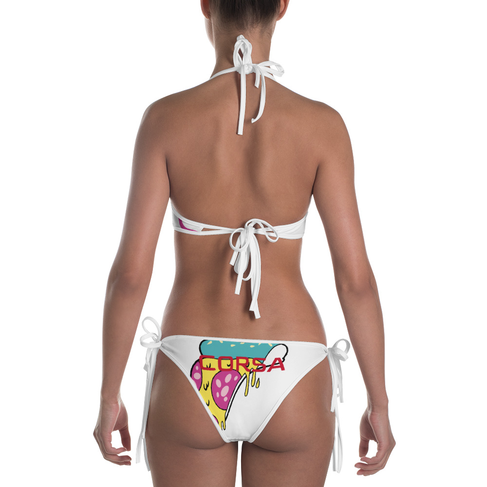 Feel the heat with this bright and comfortable bikini! The top is similar in style to a sports bra for extra support and a great look while lounging on sandy beaches.